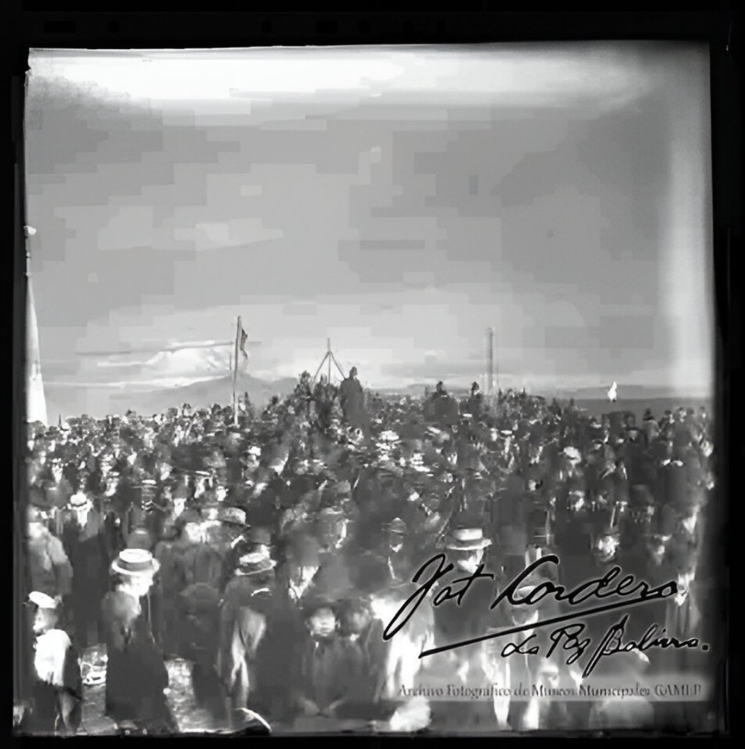 Concentración de una multitud de personas en el Faro Murillo de la ciudad de El Alto, en celebración del centenario del 16 de julio de 1909.Fher Masi17/11/2025Acto público Document 1909_faro_murillo_j_cordero Descargar MetadatosTítuloConcentración de una multitud de personas en el Faro Murillo de la ciudad de El Alto, en celebración del centenario del 16 de julio de 1909.CategoríaArchivo institucionalTemasActo públicoAutorJulio Cordero CastilloAño aproximado1909Fecha aproximada16 de julio de 1909RepositorioMuseo Tambo QuirquinchoEspacio geograficoFaro Murillo - El Alto SurCoordenadas-16.51237968252772, -68.1530556087227Archivado porFher Masi
