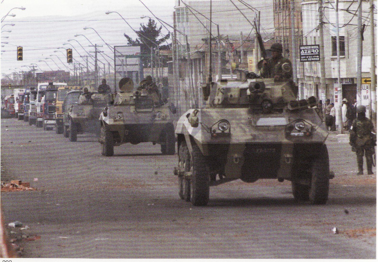 Tanques escoltando cisternasFher Masi17/11/2025Octubre Negro Document 2003_octubre_tanquetas Descargar MetadatosTítuloTanques escoltando cisternasCategoríaReporte fotográficoTemasOctubre NegroAutors/nAño aproximado2003Fecha aproximadaOctubre de 2003RepositorioLa RazónEspacio geograficoPlanta de SenkataCoordenadas-16.566111146746994, -68.18651501636548Archivado porFher Masi